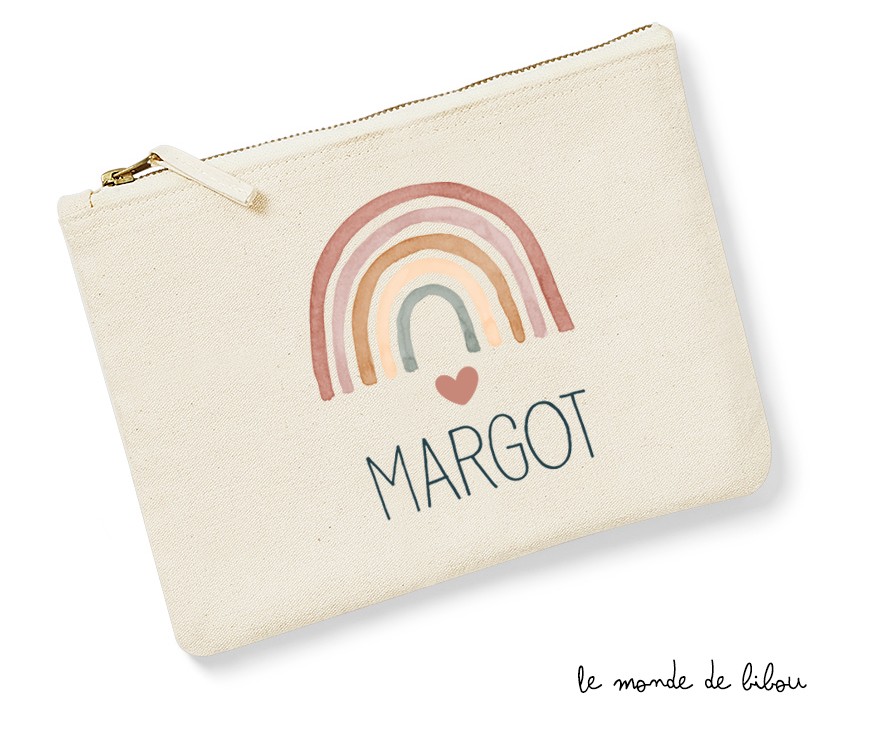 On adore cette petite Pochette enfant Rainbow fille multi-usage, un cadeau personnalisable à son prénom. L’illustration Rainbow, Arc-en-ciel, est réalisée avec un effet aquarelle. Elle plaira à coup sûr aux petites comme aux grandes filles. qui pourront y glisser crayons, petites poupées ou toutes les petites choses qui leur tiennent à cœur. Une chouette trousse qui servira pour la crêche, l’école maternelle, pour transporter ses affaires chez les copains ou encore pour partir en week-end chez papy et mamie… Tout est possible !