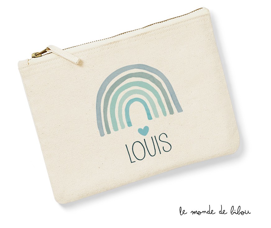 On adore cette petite Pochette enfant Rainbow garçon multi-usage, un cadeau personnalisable à son prénom. L’illustration Rainbow, Arc-en-ciel, est réalisée avec un effet aquarelle. Elle plaira à coup sûr aux petits comme aux grands, qui pourront y glisser crayons, petites voitures ou toutes les petites choses qui leur tiennent à cœur. Une chouette trousse qui servira pour la crèche, l’école maternelle, pour transporter ses affaires chez les copains ou encore pour partir en week-end chez papy et mamie… Tout est possible !