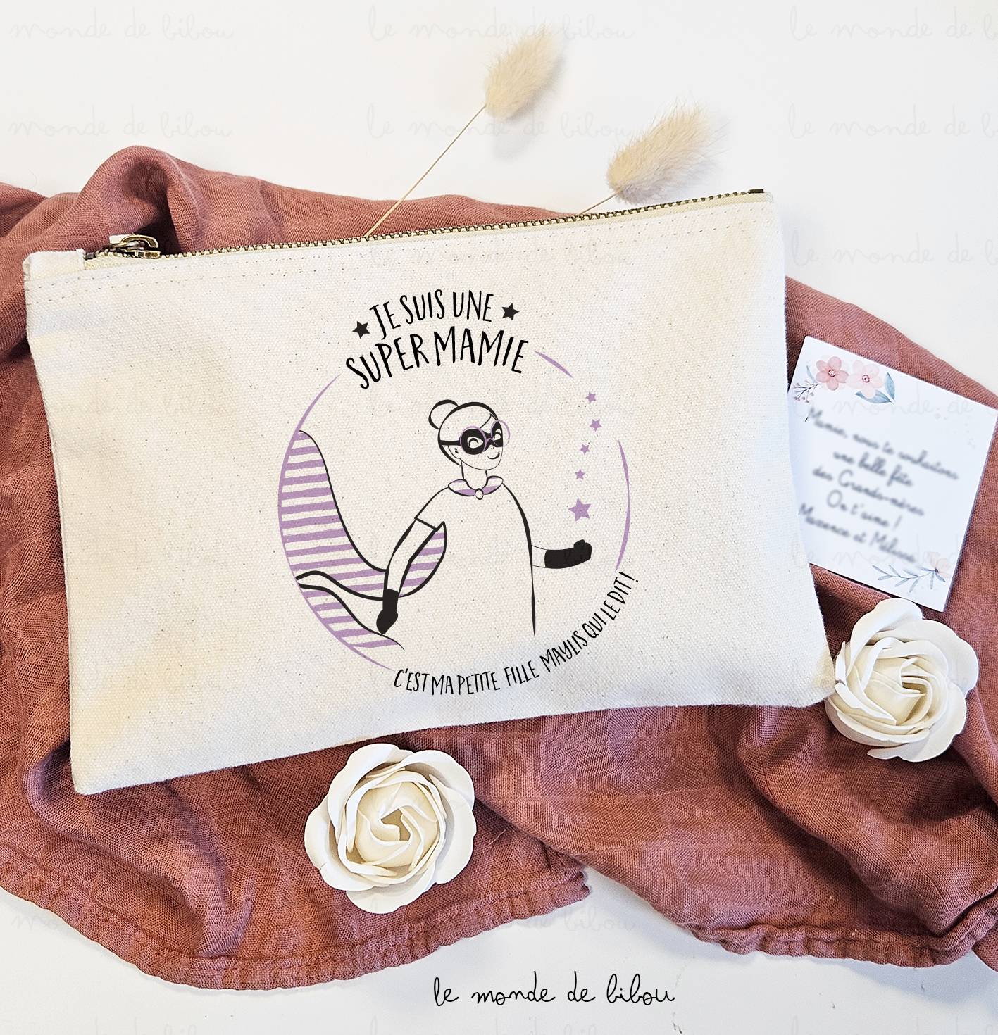 On adore cette super trousse pour une Super mamie multi-usage, un cadeau personnalisable à son prénom.