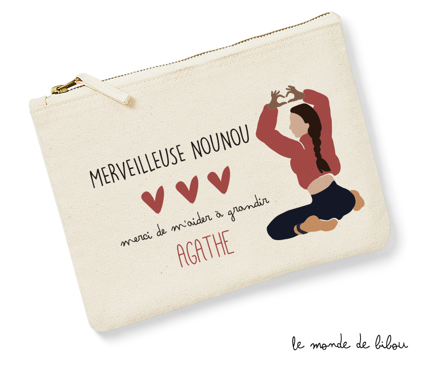 Notre Pochette Merveilleuse Nounou personnalisable vous plaît ? Retrouvez tous nos modèles de pochettes et trousses personnalisées sur la boutique ainsi que nos cadeaux Maîtresse, Atsem, Nounou, etc…