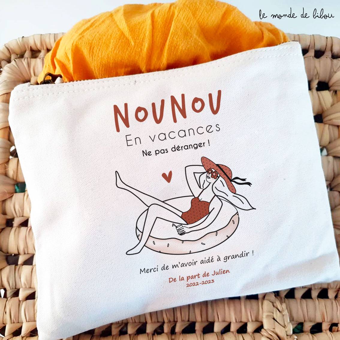 Notre Pochette Nounou en vacances personnalisée vous plaît ? Retrouvez tous nos cadeaux pour Maître, Maîtresse, Atsem, AVS et Nounou (mugs, sacs, goodies et cartes, etc…) dans la boutique. Enfin, retrouvez toutes nos trousses et pochettes, à offrir pour toutes les occasions.