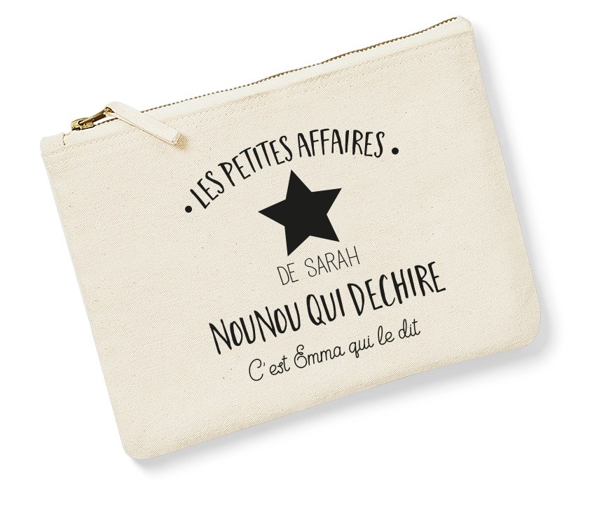 Notre Pochette Nounou qui déchire est personnalisée au prénom de la Nounou et de votre ou vos enfant(s). C’est une belle attention pour remercier l’assistante maternelle de votre enfant. La trousse personnalisable pour Nounou est aussi un chouette cadeau à offrir comme cadeau de fin d’année scolaire, pour un anniversaire ou encore pour les fêtes de Noël.