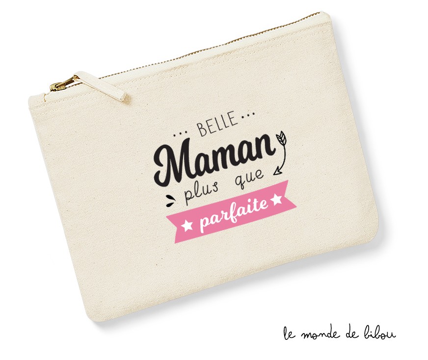 Vous souhaitez offrir un petit cadeau à votre belle-mère ? Nous vous proposons cette jolie Pochette Parfaite Belle maman en coton naturel. Cette trousse est multi-usage (trousse à crayons, à maquillage, à bazar… ). On l’adore ! C’est un joli cadeau à offrir pour dire comme on l’aime et combien elle compte pour vous. Idéal pour célébrer la fête des mères, un anniversaire, comme cadeau de Noël ou sans occasion particulière, juste pour faire plaisir…