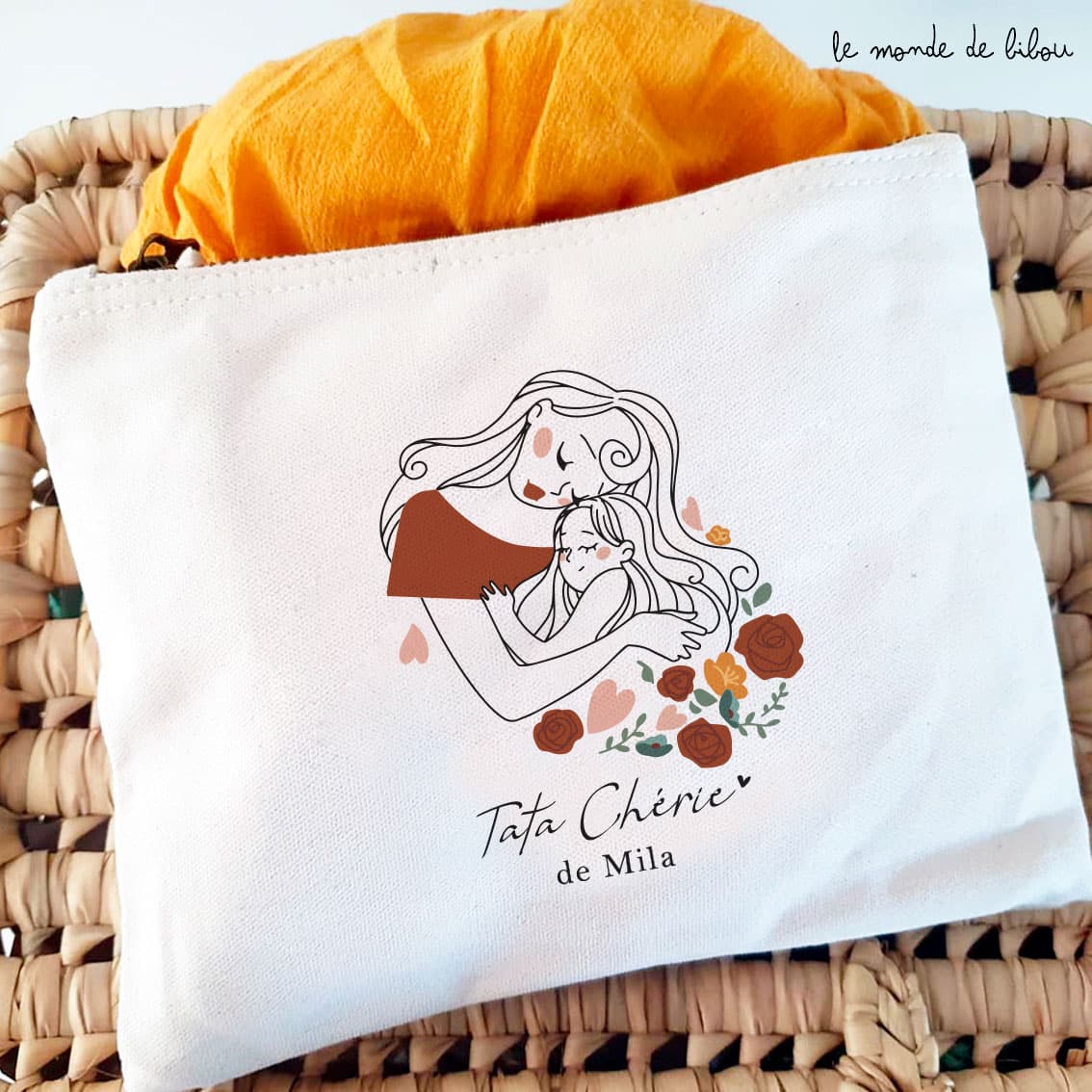 Cette Pochette personnalisée Tata chérie est une chouette idée de cadeau personnalisé à offrir à celle que vous souhaitez : à votre sœur, votre belle-sœur ou votre propre tante… On adore cette trousse personnalisée pour Tata ! C’est le cadeau idéal à offrir à l’occasion d’un anniversaire, comme cadeau de Noël ou juste comme ça pour faire plaisir à cette tatie qui compte pour vous…