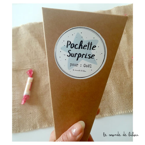 - Texte recto : « Pochette surprise – Pour Prénom du futur marié »