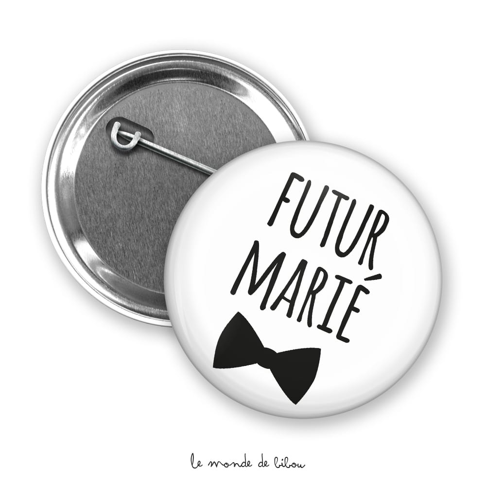 Le Badge « Futur marié » pour EVJG peut s’attacher partout (vêtement, pochette, trousse, sac …)