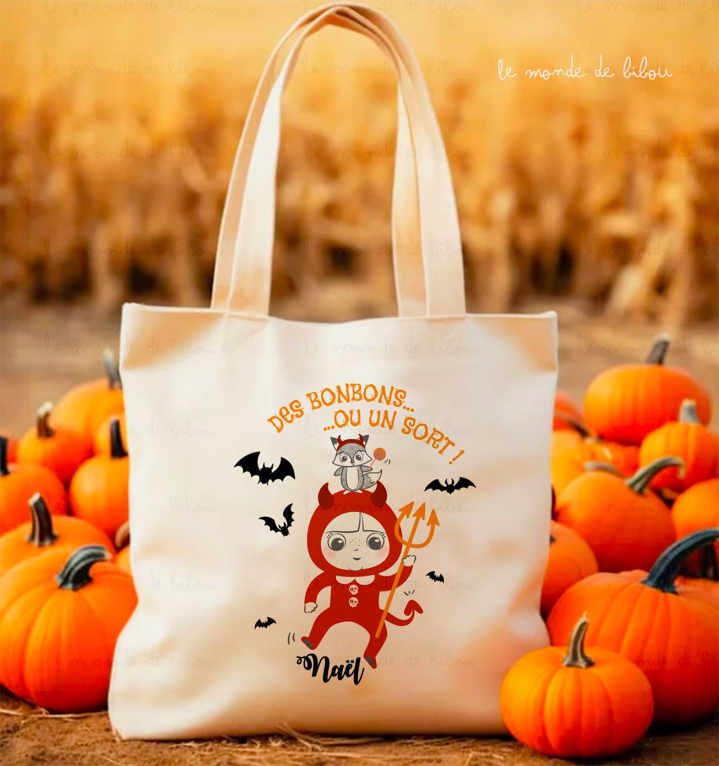 Préparez-vous à une récolte de bonbons monstrueusement délicieuse avec notre Sac à bonbons d’Halloween personnalisé Diable ! Une fois que cette soirée de frissons sera passée, votre enfant pourra facilement réutiliser ce sac tote bag multi-usage personnalisé, pour l’école, pour transporter les jouets chez les copains ou pour partir en week-end chez papy et mamie…