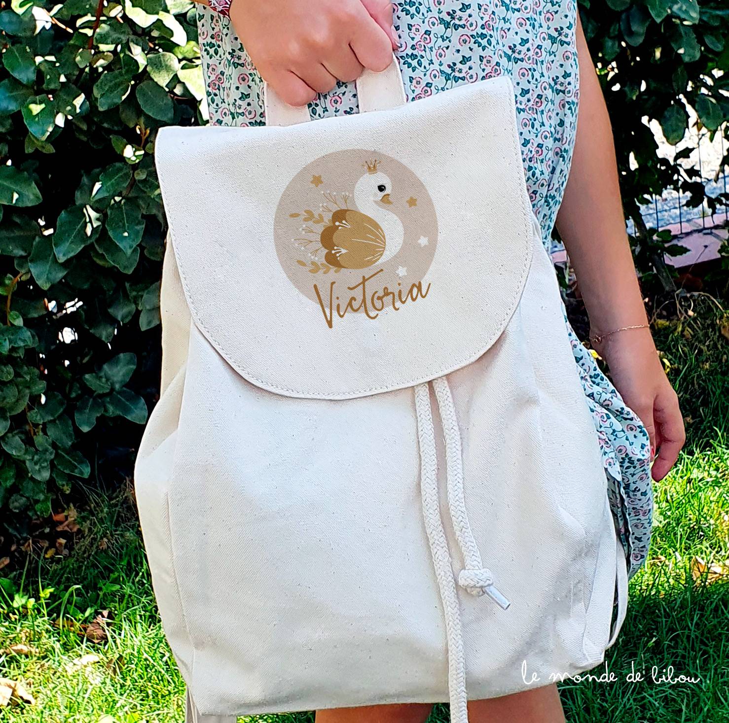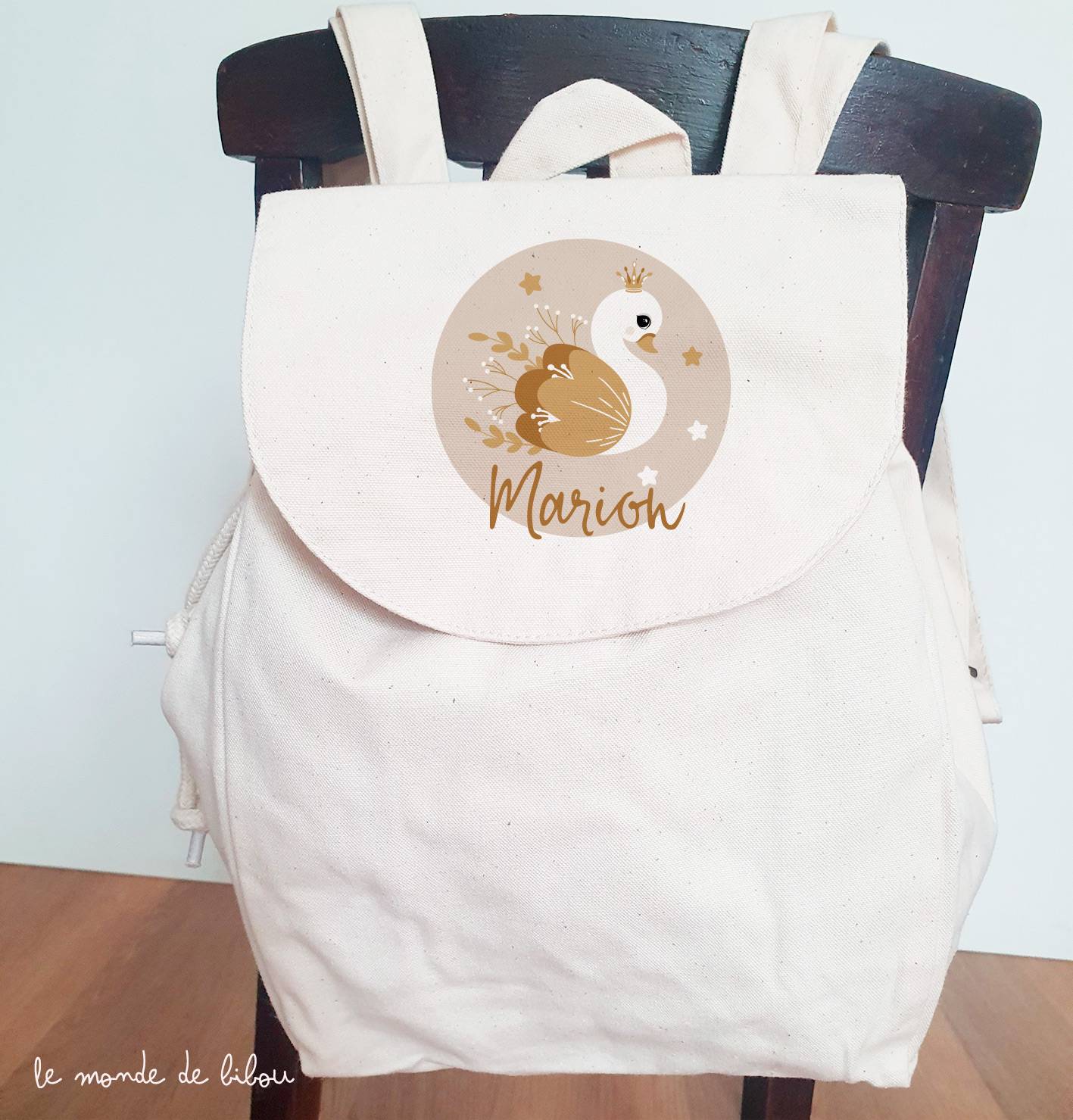 On adore ce joli Sac à dos personnalisé cygne. Ce sac est parfait pour accompagner les petits, chez nounou, à la crèche ou à l’école maternelle. (A noter que le sac à dos n’est pas adapté pour contenir des livres de classe de l’école élémentaire). Votre enfant sera très fier d’emmener lui même son doudou, son goûter, un change ou un petit jouet par exemple…