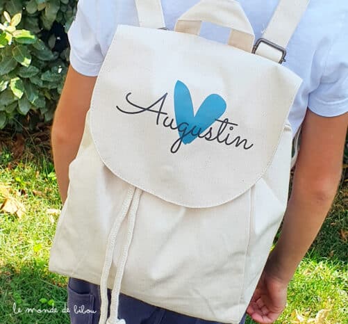 Ce sac à dos personnalisé pour enfant, est idéal pour la rentrée scolaire ! Une jolie idée de cadeau à offrir à votre ou vos enfants, mais aussi une belle idée pour que les grands-parents puissent gâter leurs petits-enfants ou même que les parrains et les marraines chouchoutent leurs filleuls… Parfait pour une super rentrée des classes !