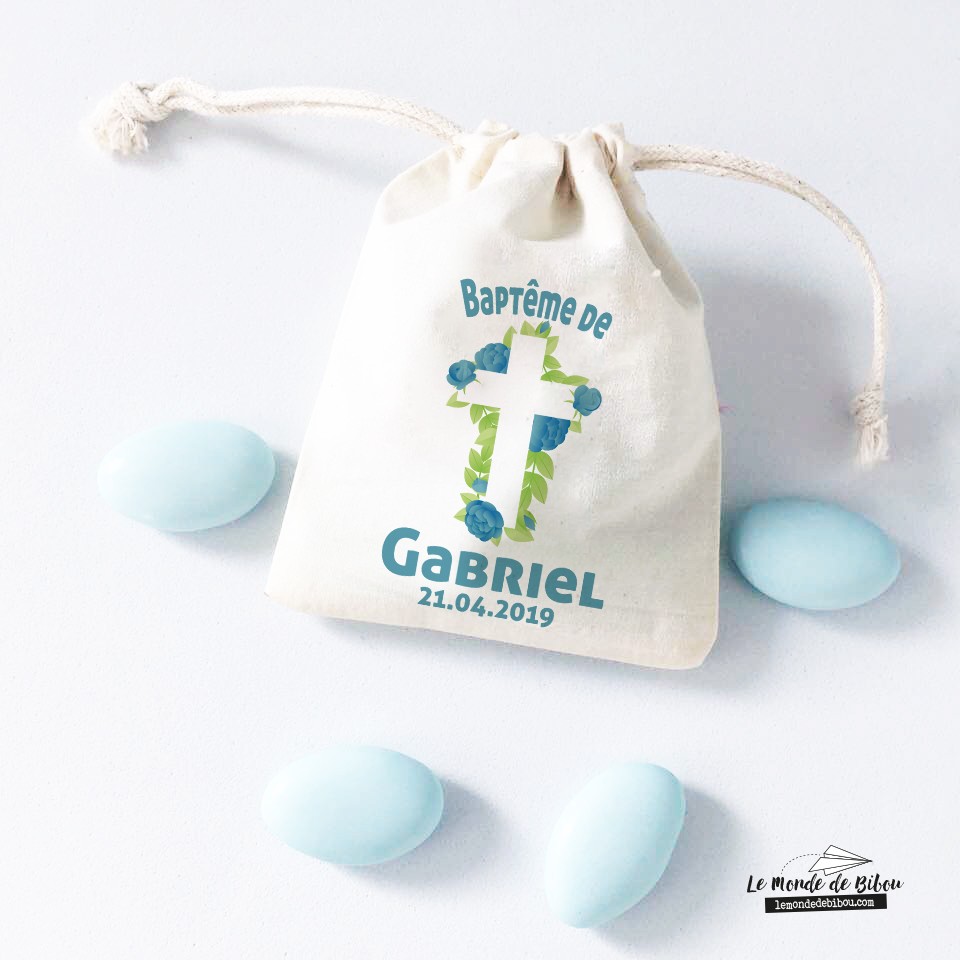 Ce ravissant petit Sac ballotin dragées Croix fleurie est personnalisable avec le prénom de l’enfant et la date de l’évènement. Le cadeau idéal à offrir à vos invités lors de votre évènement, que ce soit un Baptême, une Communion ou un anniversaire.