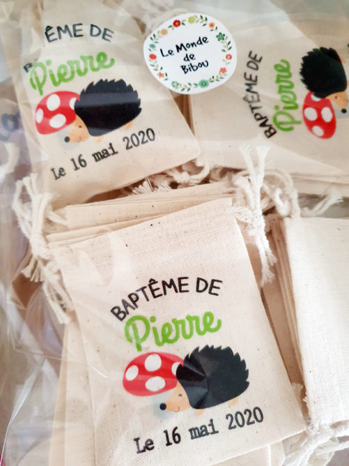 Notre Sac ballotin dragées Hérisson vous plaît, mais vous souhaitez encore plus de personnalisation avec votre propre thème? N’hésitez pas à nous demander, nous vous proposons un service sur-mesure.