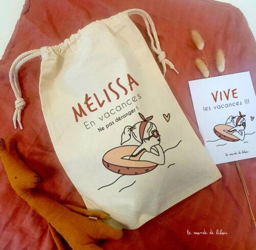 Un petit Sac rangement Enfant en vacances personnalisable multi-usage, il servira pour les vacances, mais aussi pour transporter ses affaires chez les copains ou pour partir en week-end chez papy et mamie… Tout est possible ! Faîtes-en ce que vous voulez : un sac à pyjama, à goûter, à doudou, à change ou pour ranger ses petits jouets…
