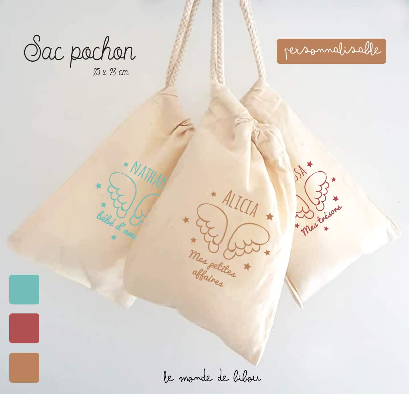 - Personnalisé selon votre choix (prénom de l’enfant, utilité du sac, etc…)