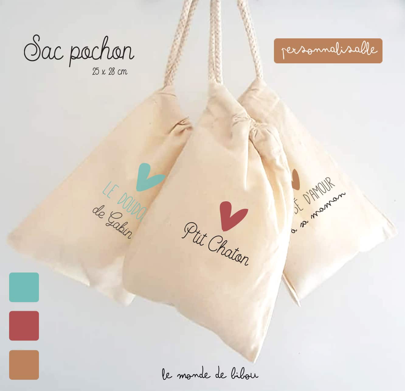 - Personnalisé selon votre choix (prénom de l’enfant, utilité du sac, etc…)