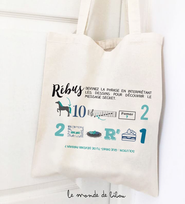 Notre sac plaira à coup sûr grâce à son style moderne et son côté ludique. Le tote bag rébus pour une demande originale n’est pas personnalisable, mais vous souhaitez le faire pourquoi ne pas y ajouter une petite carte ou un joli badge ? Grâce à nos cadeaux personnalisables fabriqués en France, vous pourrez offrir un cadeau unique et faire en même temps votre demande.