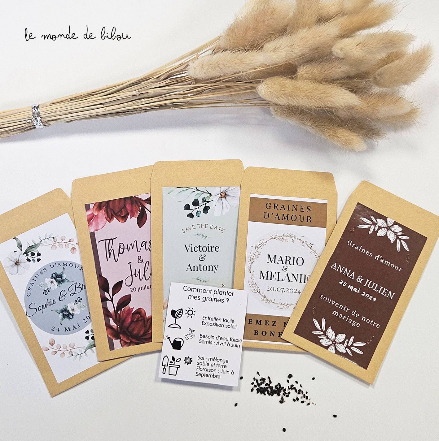 - Sachet de graines personnalisé vendu à l’unité, sans accessoires