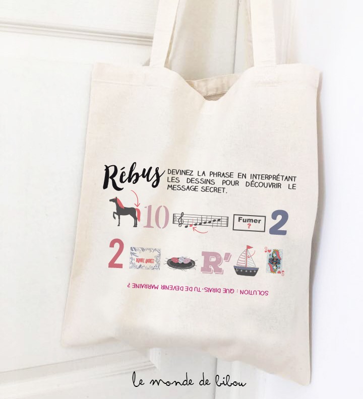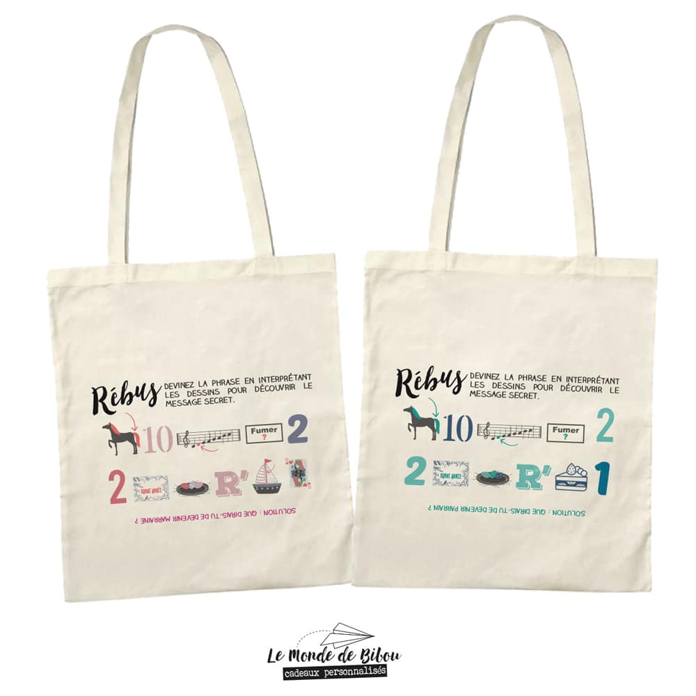 Offrez ce duo de tote bags rébus pour une demande originale, c’est un joli cadeau surprise pour vos proches.