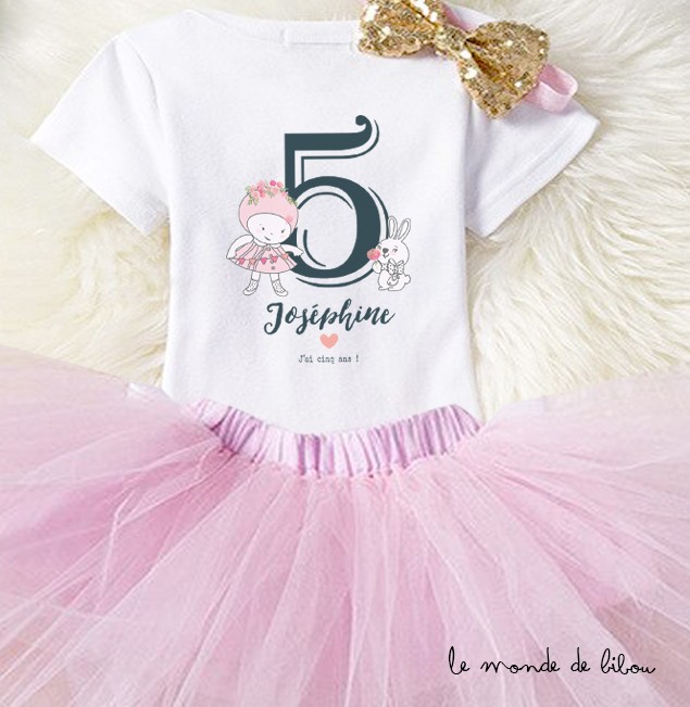 Un joli T-shirt anniversaire fille personnalisé pour fêter son anniversaire, idéal pour faire de jolies photos souvenirs. Le t-shirt est personnalisé avec l’âge et le prénom de l’enfant. Nous vous le proposons en plusieurs tailles du 3 mois au 13 ans !