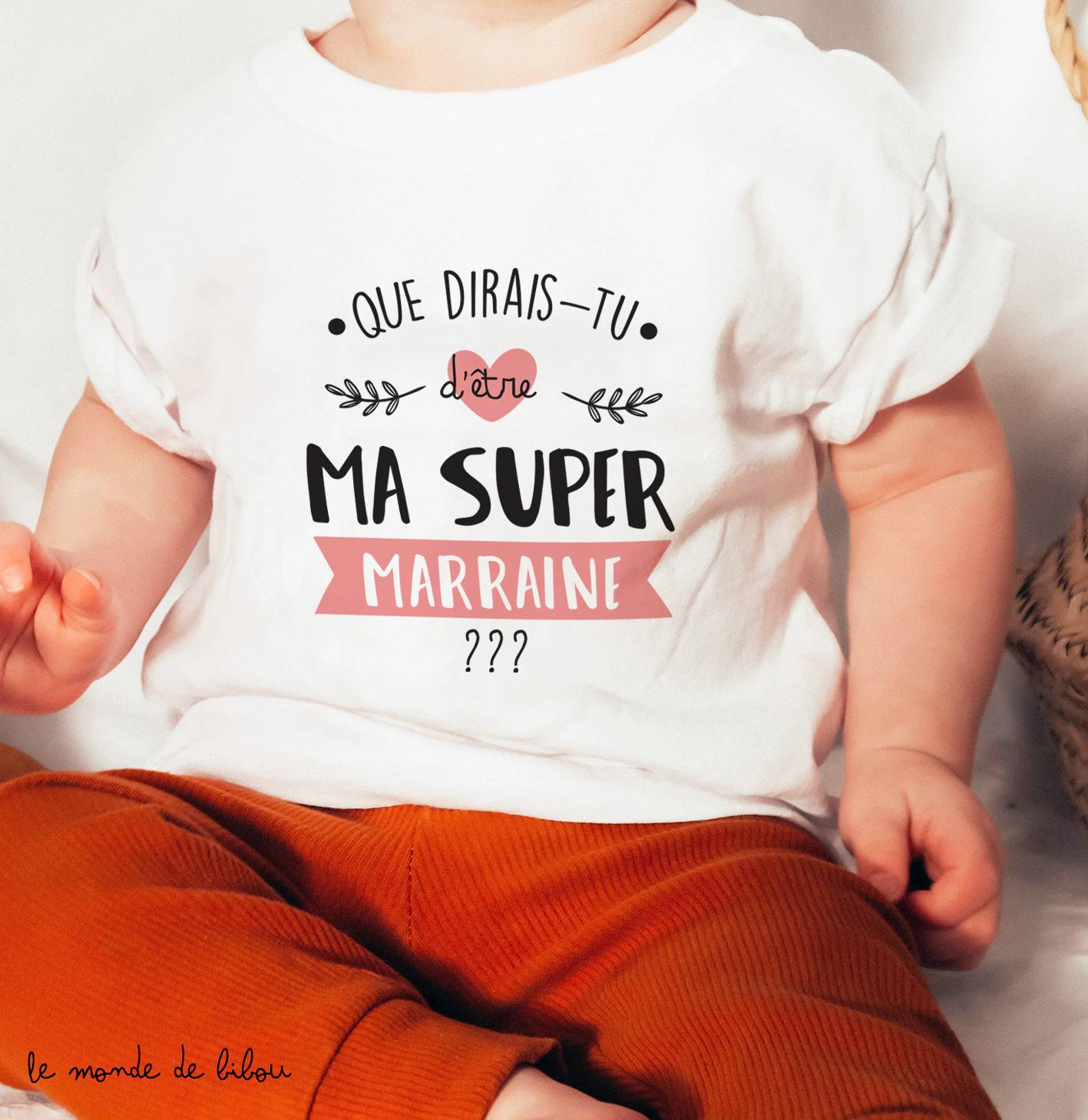 Une idée de cadeau personnalisé et jolie demande originale pour une super marraine… C’est le petit cadeau idéal à offrir lors de l’annonce de votre grossesse par exemple. Il ne pourra que craquer demande cette demande ! Le T-shirt n’est pas personnalisable, mais vous souhaitez le faire pourquoi ne pas y ajouter une petite carte ou un joli badge ?