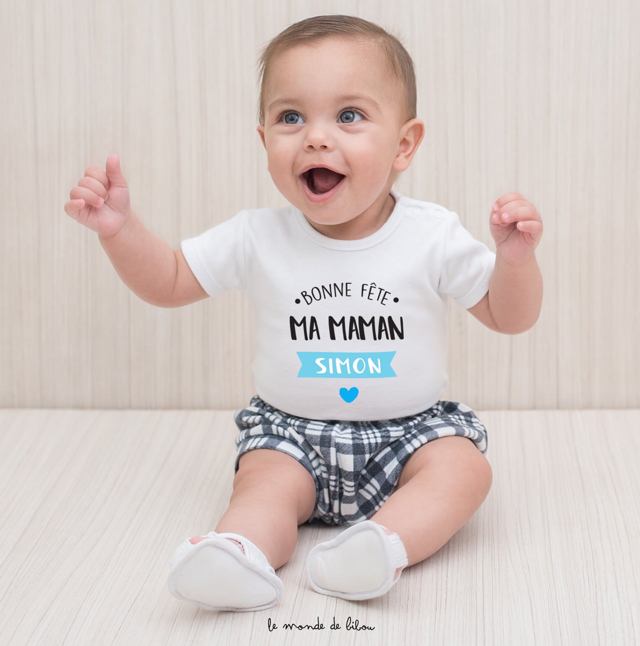 On adore ce petit T-shirt bébé Fête des Mères. Ce t-shirt manches courtes ou longues convient à tous les bébés, la fermeture à l’épaule se fait par pression pour faciliter le changement. L’illustration vous est proposée en 2 couleurs (bleu ou rose), à vous de choisir.