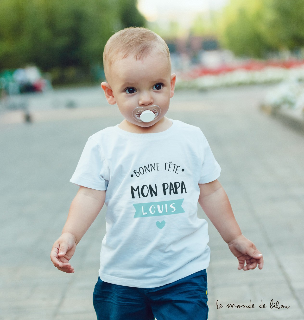 Notre joli T-shirt pour une super Fêtes des Pères, personnalisable au prénom de votre enfant, est une jolie idée de cadeau personnalisé. C’est l’attention idéale pour célébrer la fête des papas et ainsi lui dire comme on l’aime et combien il compte pour nous !