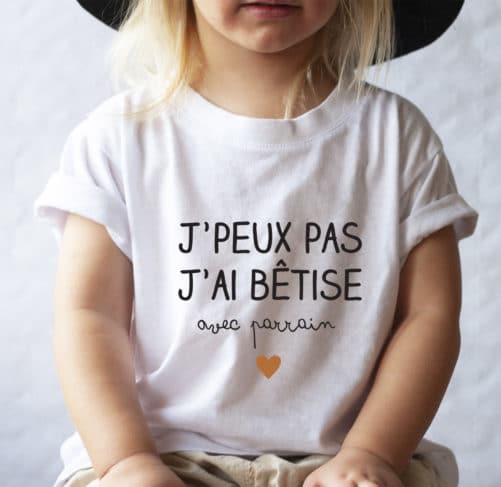 Un joli t-shirt à offrir à votre filleul, garçon ou fille. Le T-shirt cadeau enfant la part de son parrain n’est pas personnalisable, mais vous souhaitez le faire pourquoi ne pas y ajouter une petite carte ou un joli badge ? C’est le petit cadeau personnalisé idéal à l’occasion d’une naissance, d’un Baptême, d’un anniversaire, des fêtes de Noël ou sans raison spéciale, juste pour faire plaisir.