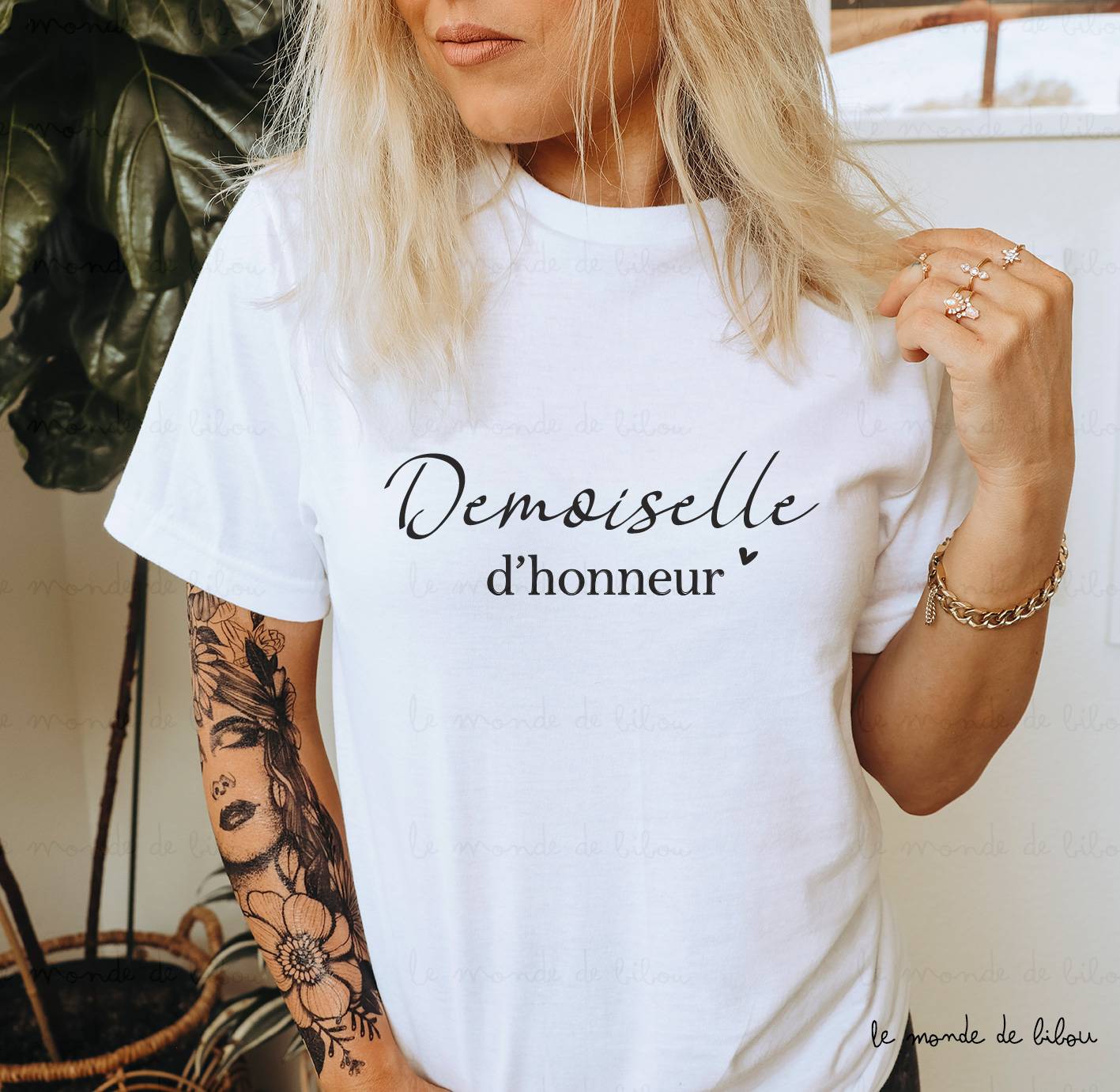 Quelle bonne idée d’offrir un T-shirt enterrement de vie de jeune fille aux participantes d’un EVJF. La team de la mariée sera réunie pour former une véritable équipe autour de la future mariée. Vous avez la possibilité de personnaliser ce T-shirt comme vous le souhaité. Comme par exemple : t-shirt demoiselle d’honneur. Team mariée ou encore témoin de la mariée … Vous créez votre t-shirt personnalisé EVJF !