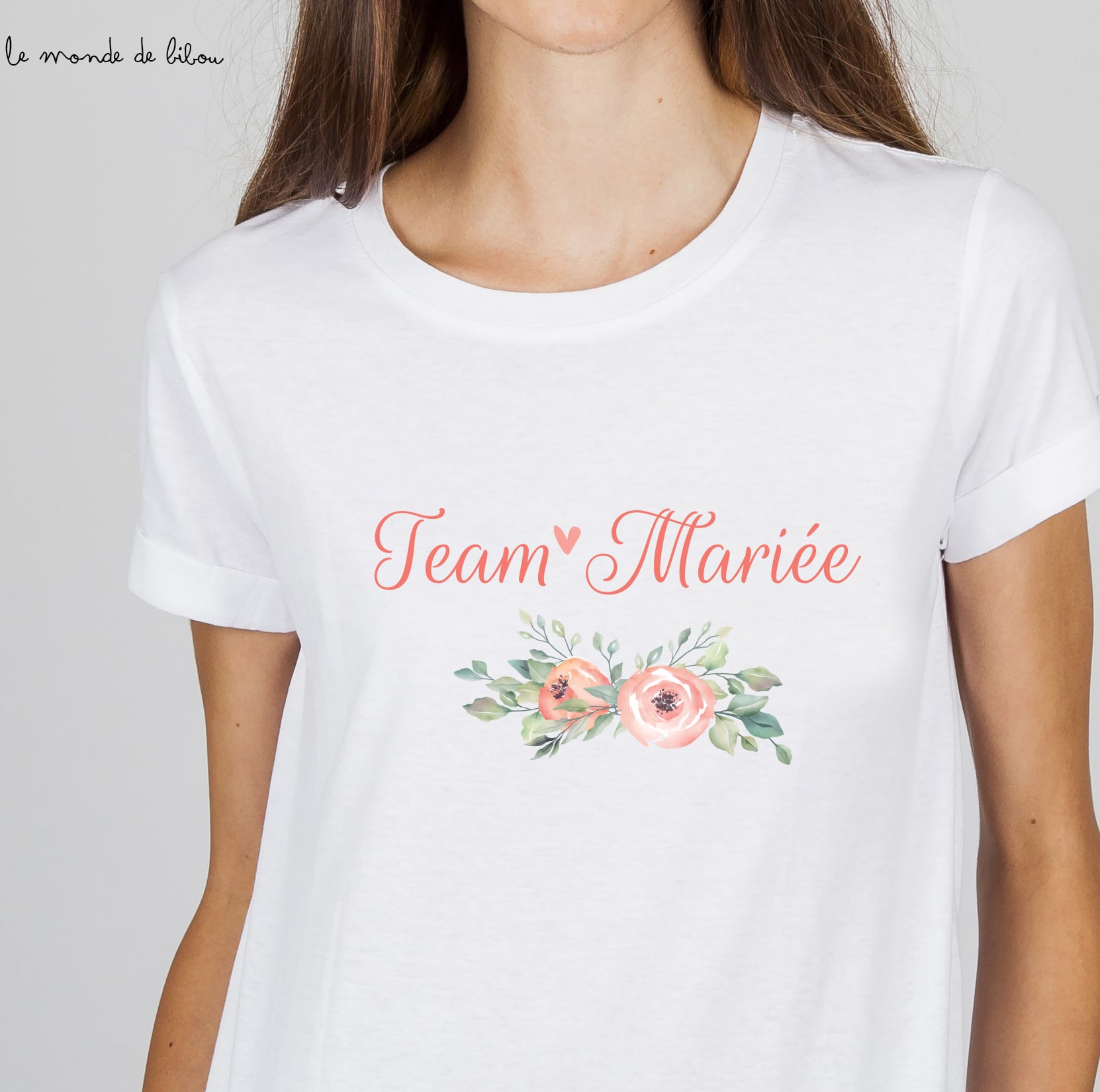 Avec ce chouette t shirt personnalisé evjf pour une équipe au top vous pouvez être sûre de faire plaisir à toute votre team de mariage ou EVJF. Notre t-shirt mariée comme celui Team de la mariée fleurs feront un joli cadeau souvenir de cet événement heureux et festif qu’est l’Enterrement de Vie de Jeune Fille…