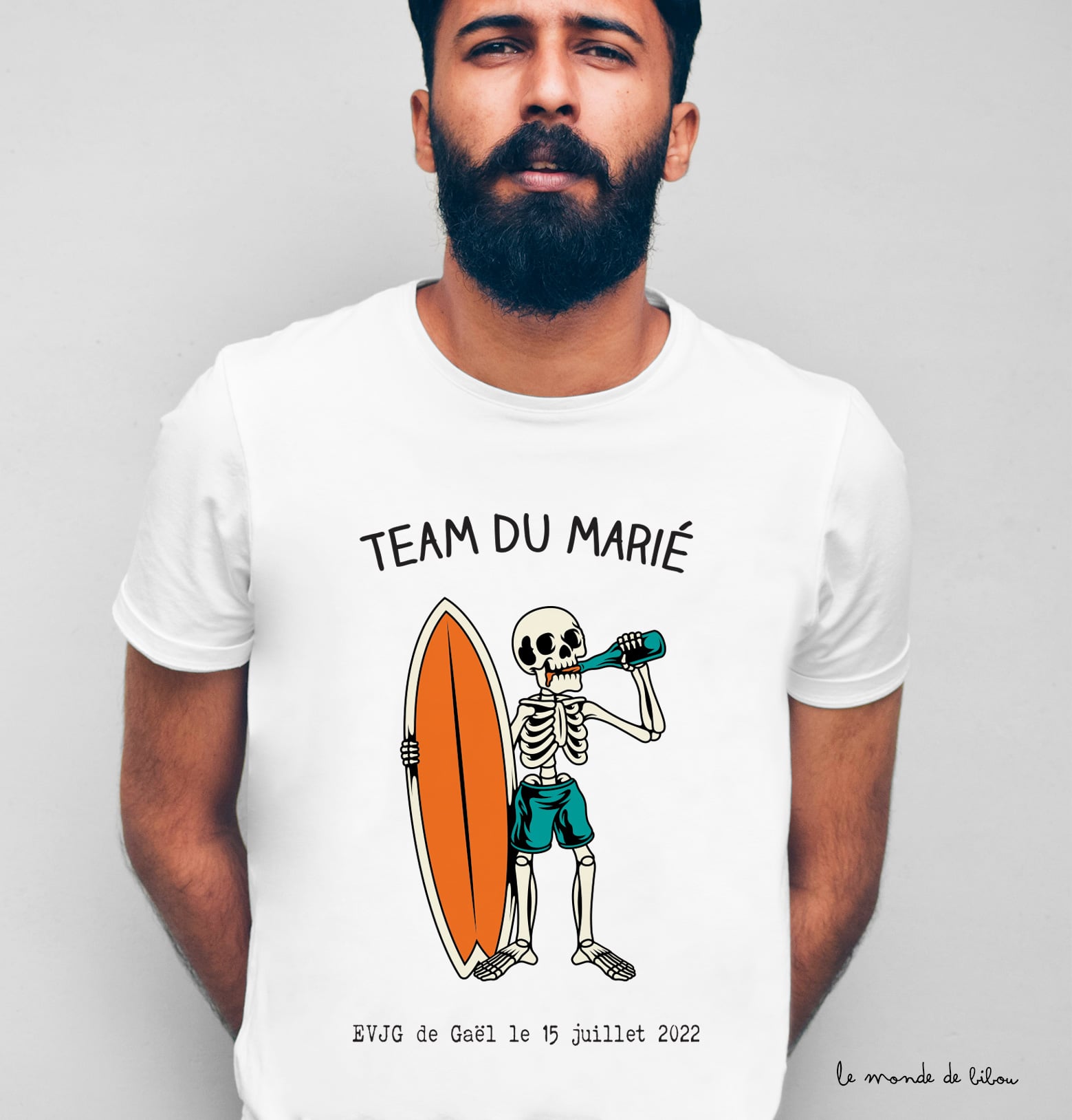 • Texte : « Team du marié + EVJG de Prénom du futur marié + Date de l’evjg »