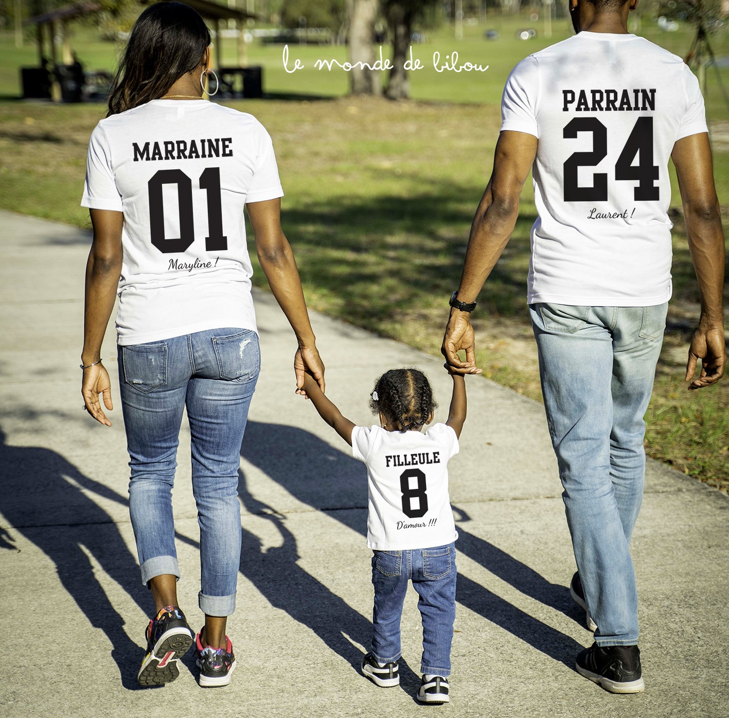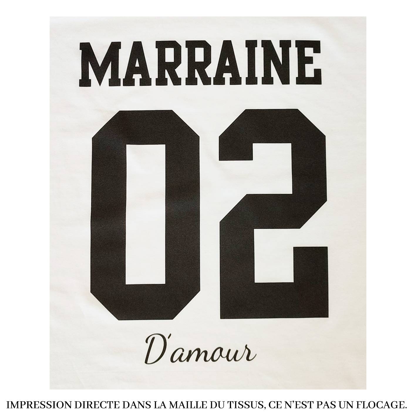 - Texte : « Filleul(e) + Numéro + Votre personnalisation (ex : Prénom du/de la filleul(e) – d’amour de Prénom du parrain/de la marraine – Amour pour la vie – etc…) »