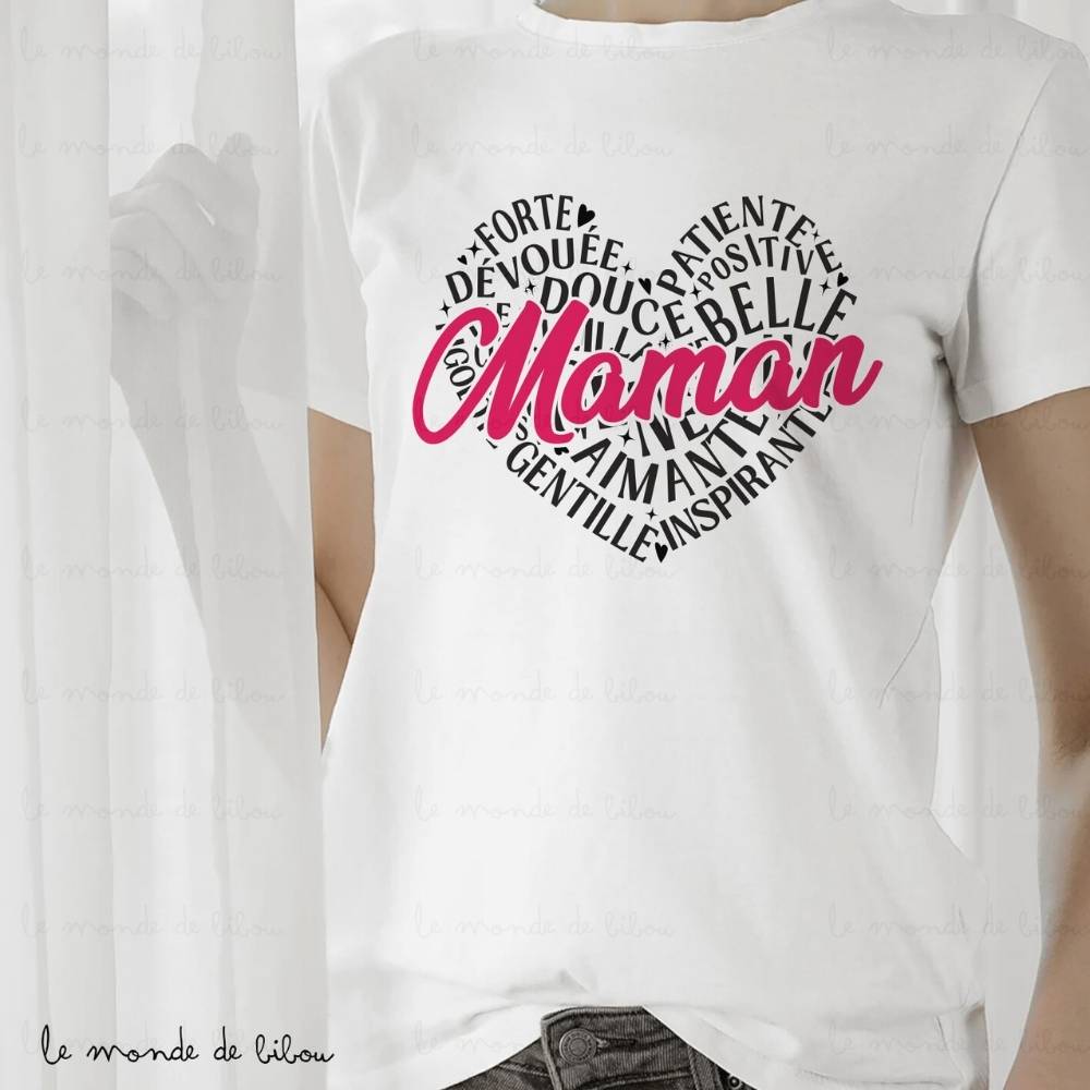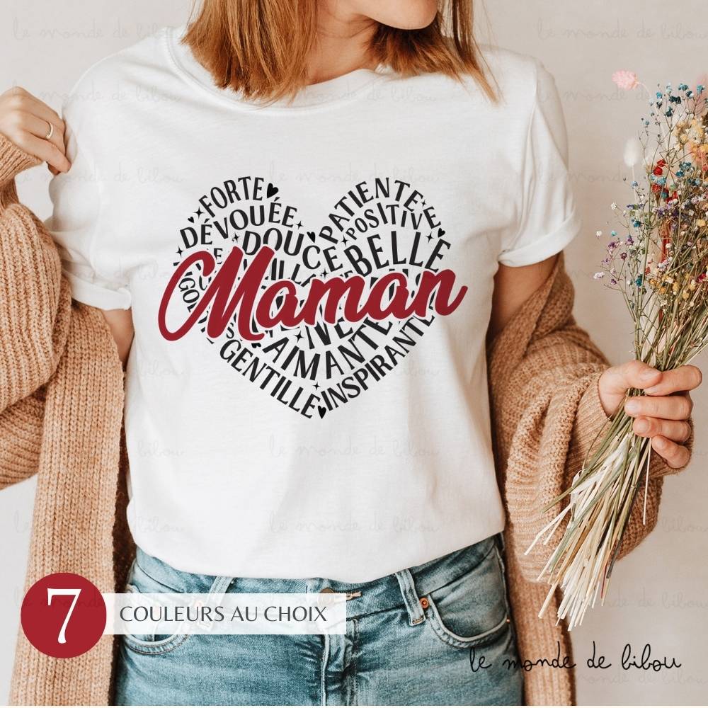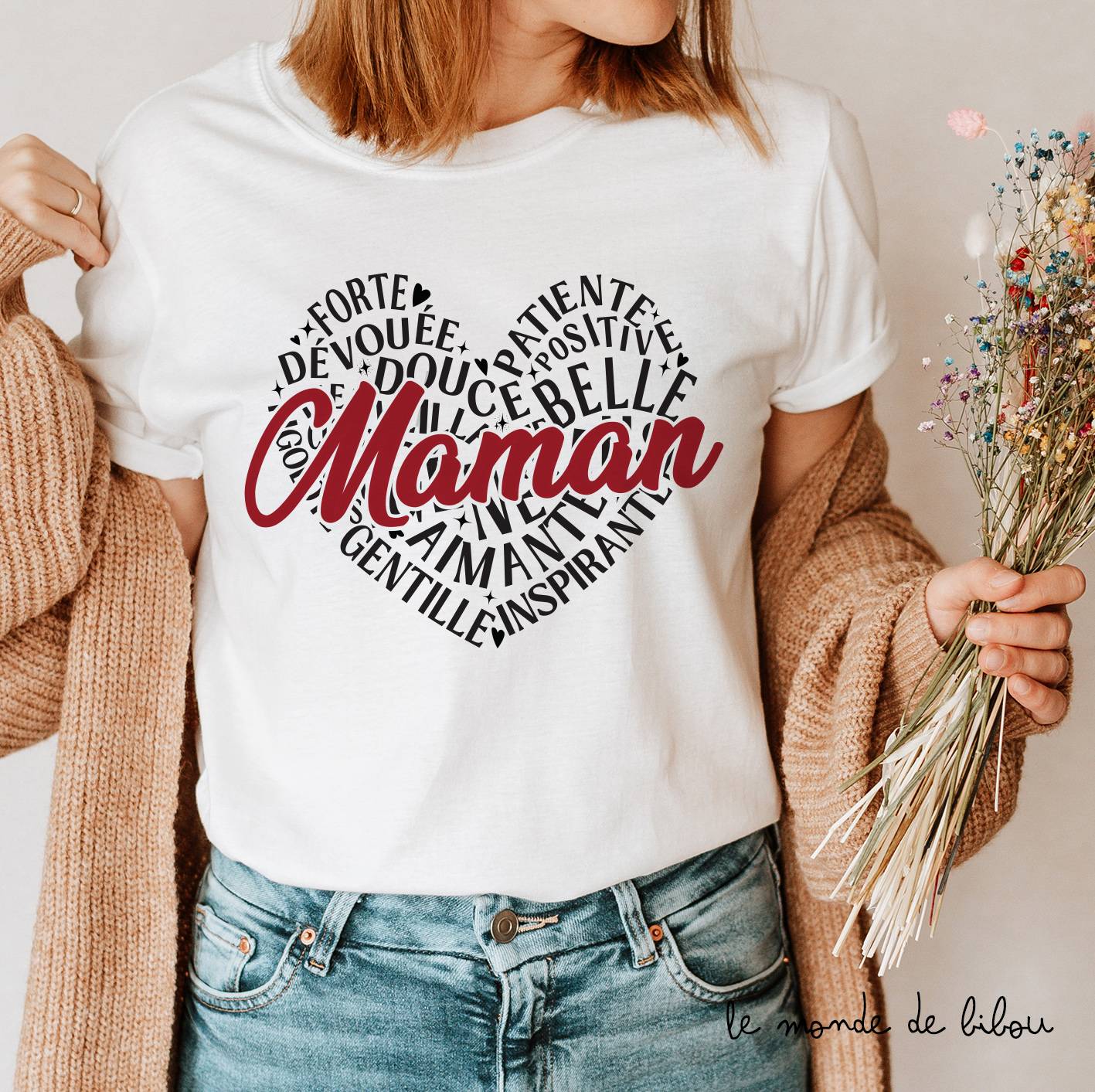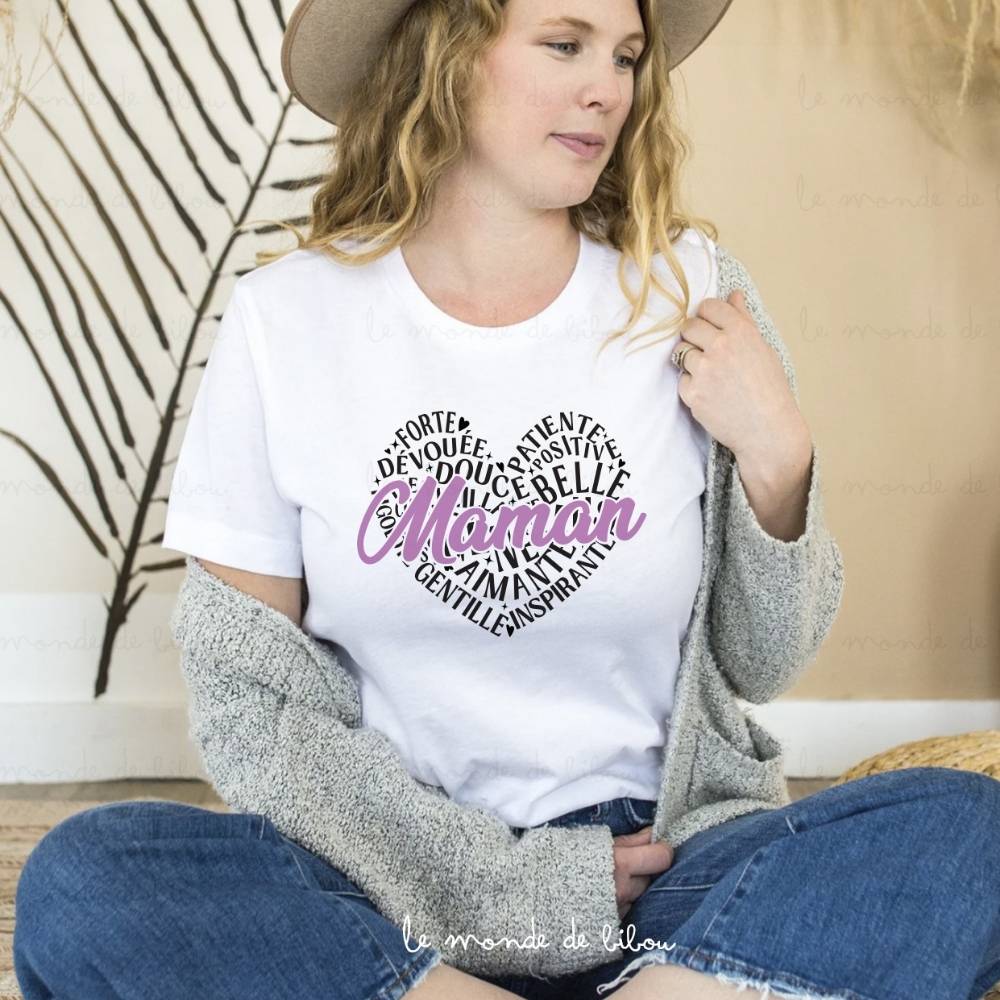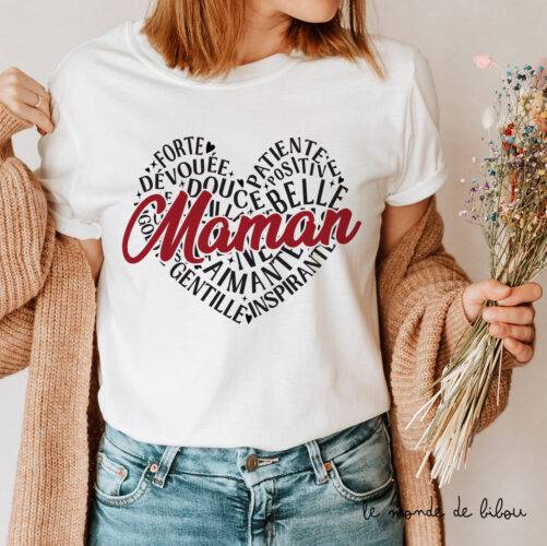 Ce T-shirt Maman d’amour cœur est le cadeau idéal à offrir à votre maman, pour exprimer votre amour envers elle. De plus, vous avez la possibilité de personnaliser les quatre qualités qui définissent votre maman. Exprimez votre amour infini avec le T-shirt , c’est le cadeau parfait pour toutes les occasions, mais surtout pour la fête des mères. Ce t-shirt met en avant le mot « maman » au centre. En arrière-plan, une multitude d’adjectifs évoquant la douceur, le dévouement, l’inspiration, l’amour et bien d’autres, formant un véritable hymne à la maternité.