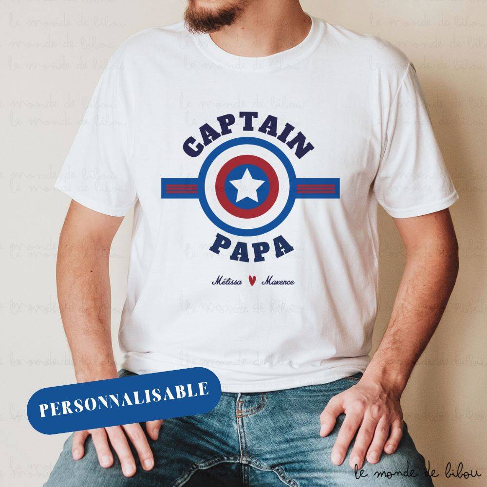 Avec ce chouette T-shirt Personnalisé Captain Papa , vous pouvez être sûre de faire plaisir à votre papa adoré.