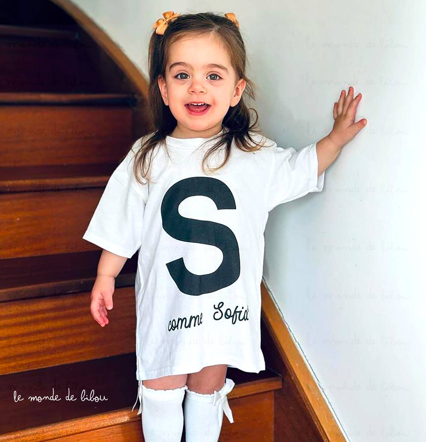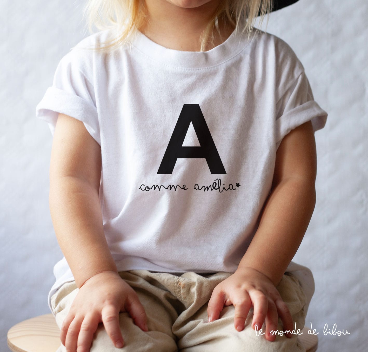 On adore ce T-Shirt personnalisé Initiale ! Ce t-shirt manches courtes ou longues qui convient à tous les enfants de 3 mois à 14 ans (2 modèles différents selon l’âge). Notre t-shirt personnalisé à son prénom est idéal pour votre enfant.