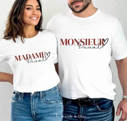 Notre T-shirt personnalisé Nom de famille vous plaît ? Retrouvez de nombreux cadeaux pour les amoureux, idéal pour une St Valentin originale et personnalisée ! Vous y découvrirez également nos nombreux t-shirts adultes personnalisés pour célébrer toutes les occasions heureuses quelles qu’elles soient (Anniversaire, Fêtes de Noël, Baptême, Remerciement, Annonce et Demande…).