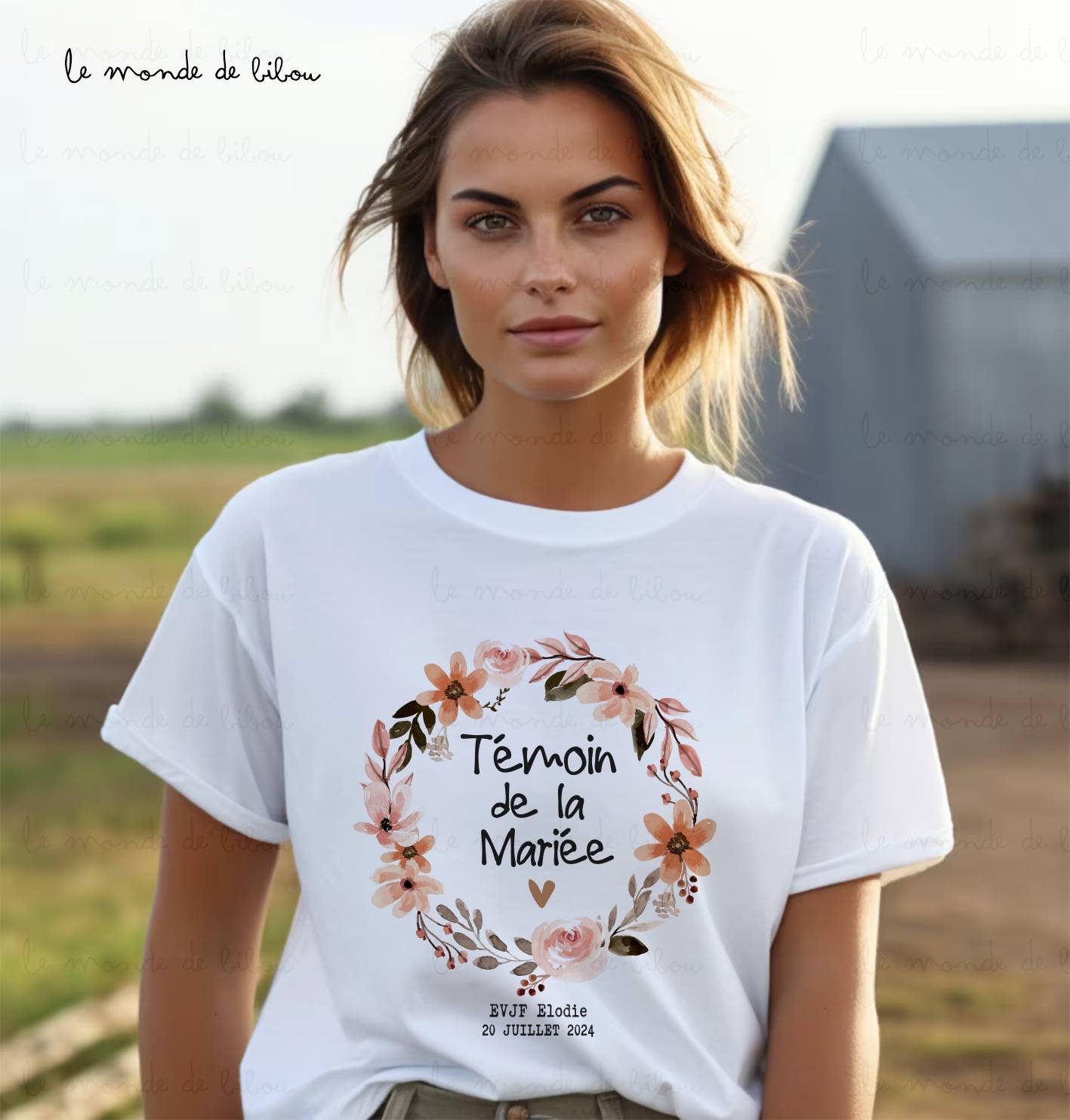 Quelle bonne idée d’offrir un T-shirt personnalisé Témoin EVJF, le petit cadeau enterrement de vie de jeune fille idéal à offrir à sa témoin lors de votre mariage ou lors de l’Enterrement de Vie de Jeune Fille. C’est également une idée originale pour remercier un témoin de mariage. Et pourquoi ne pas en faire une demande témoin originale ?!