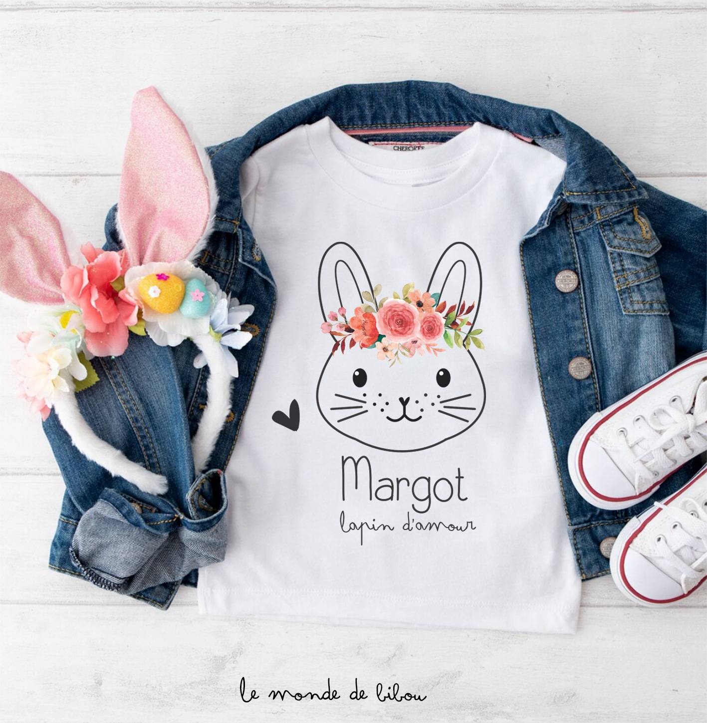 On adore ce T-Shirt Petit lapin d’amour, un chouette t-shirt personnalisé pour Pâques ! Ce t-shirt manches courtes qui convient à tous les enfants de 3 mois à 14 ans (2 modèles différents selon l’âge). Notre t-shirt personnalisé à son prénom est idéal pour votre enfant même en dehors des fêtes de Pâques… Il est disponible en version lapin petite fille et lapin petit garçon.