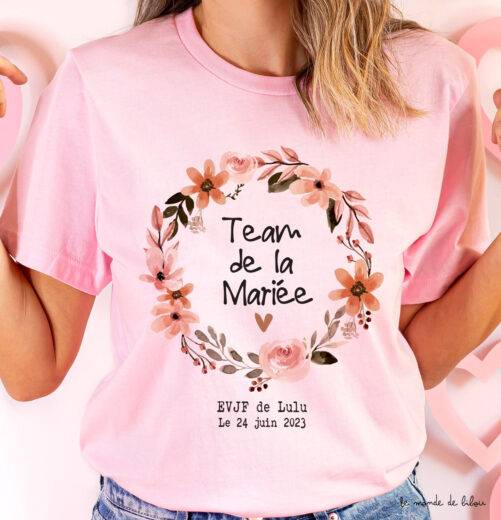 • Disponible en version Team de la mariée ou témoin t-shirt rose