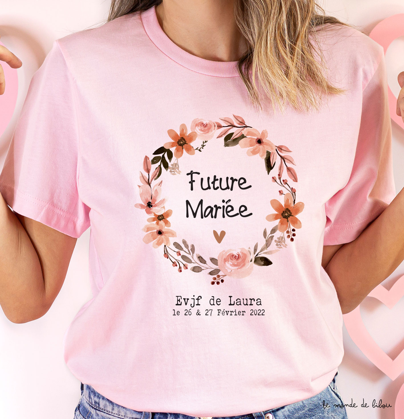 Gardez un joli souvenir de votre EVJF grâce à ce joli tee shirt future mariée evjf !