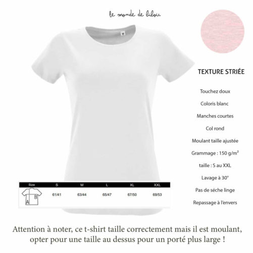 ****ATTENTION ***** Les t-shirts femme ont une coupe ajustée moulant **** si besoin prendre une taille supérieure.