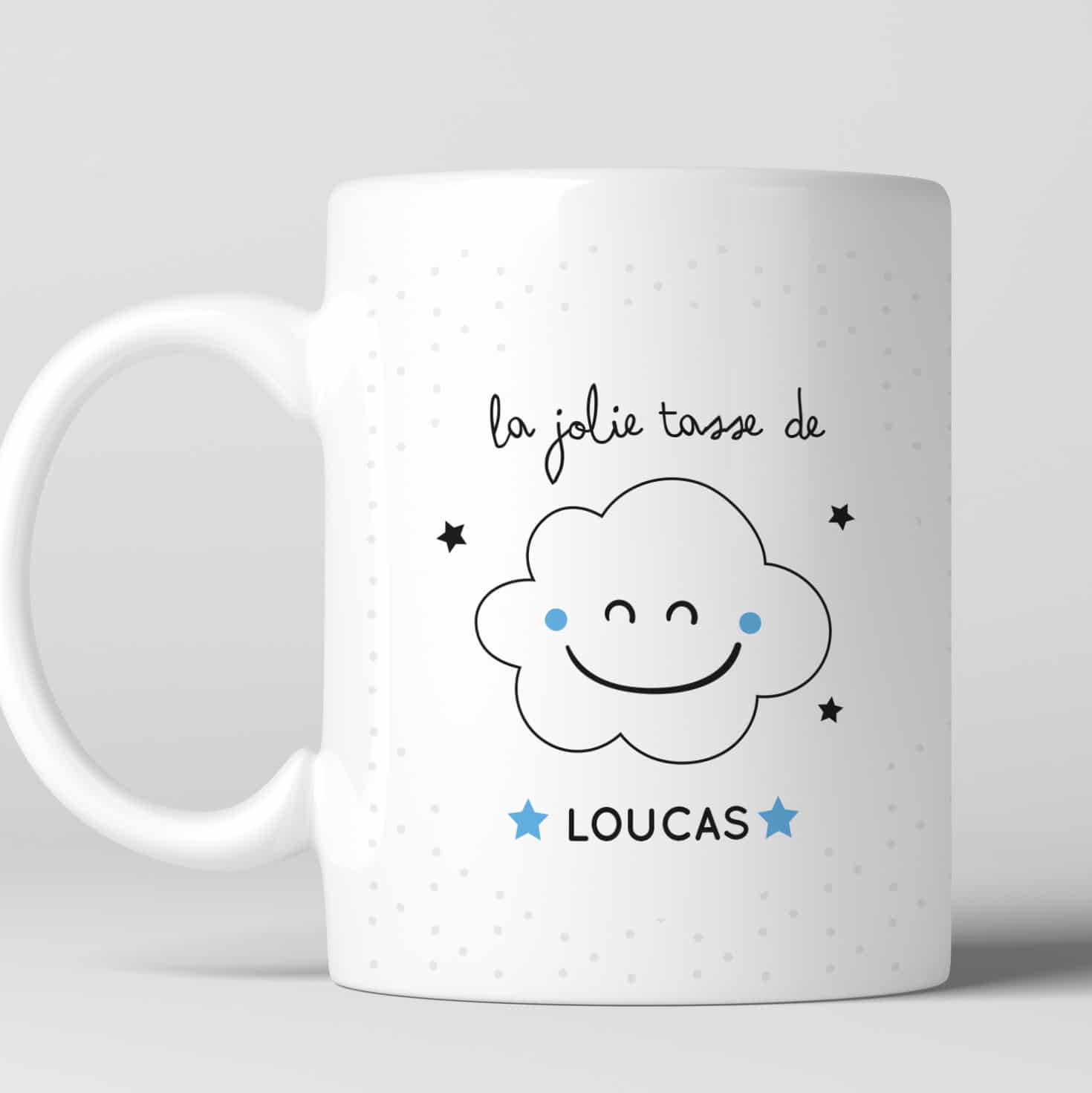 - Texte : « La jolie tasse de prénom de votre choix »