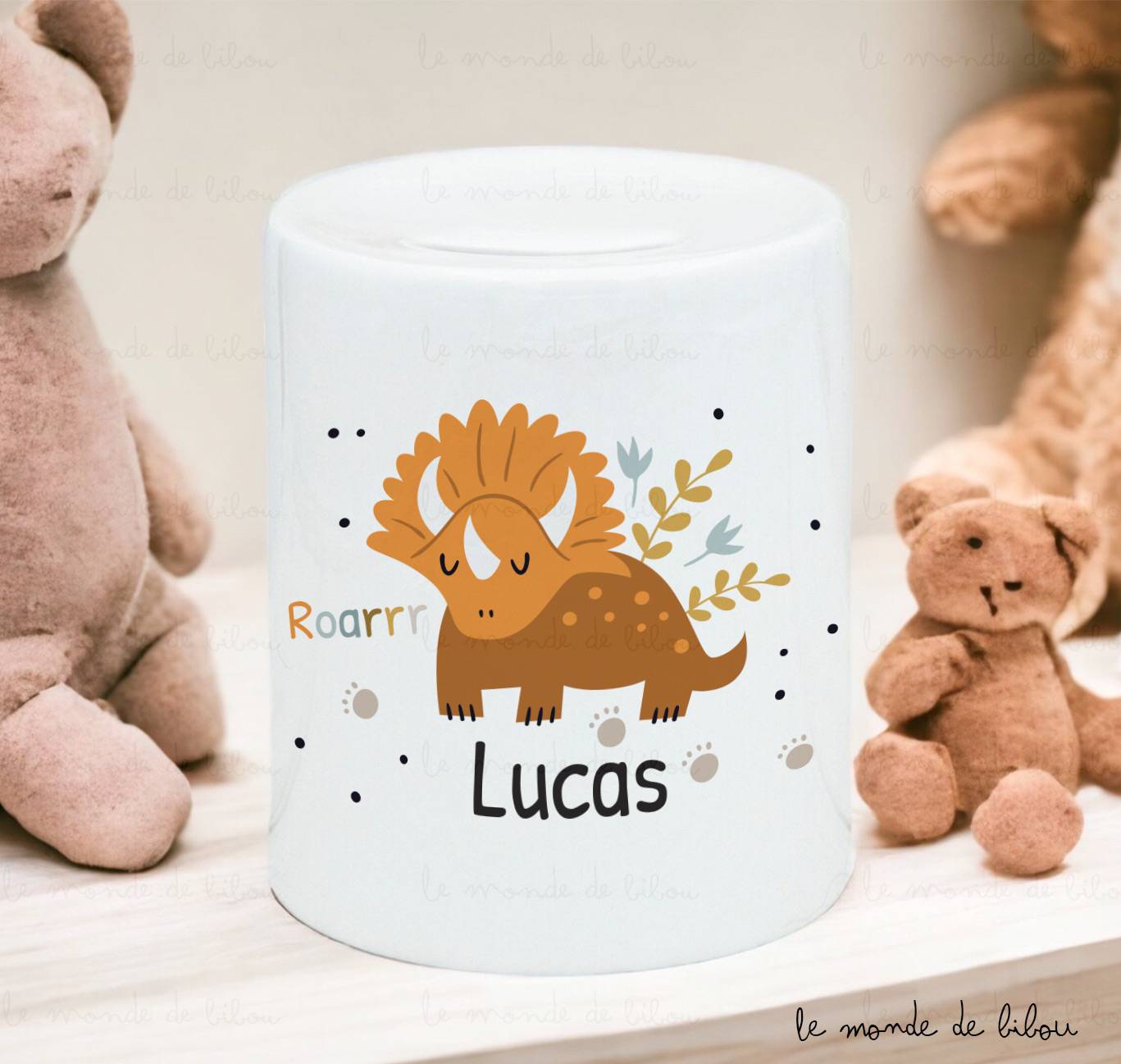 Vous cherchez un cadeau personnalisé pour enfant ? Ne cherchez plus, notre Tirelire personnalisée Dinosaure est le cadeau idéal à offrir à l’occasion d’un anniversaire, des fêtes de Noël ou sans raison particulière, juste pour faire plaisir… La tirelire, joliment illustrée avec un dinosaure rigolo aux couleurs vives et tendances, est personnalisable à son prénom. C’est un cadeau qui plaira à coup sûr aux petits économes en herbe !