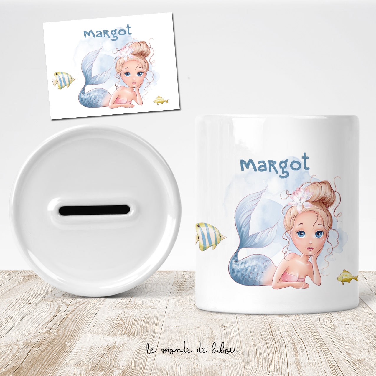 Vous cherchez un cadeau personnalisé pour enfant ? Ne cherchez plus, notre Tirelire personnalisée Sirène est le cadeau idéal à offrir à l’occasion d’un anniversaire, des fêtes de Noël ou sans raison particulière, juste pour faire plaisir… La tirelire, joliment illustrée avec une ravissante petite sirène, est personnalisable à son prénom. C’est un cadeau qui plaira à coup sûr aux petits économes en herbe !