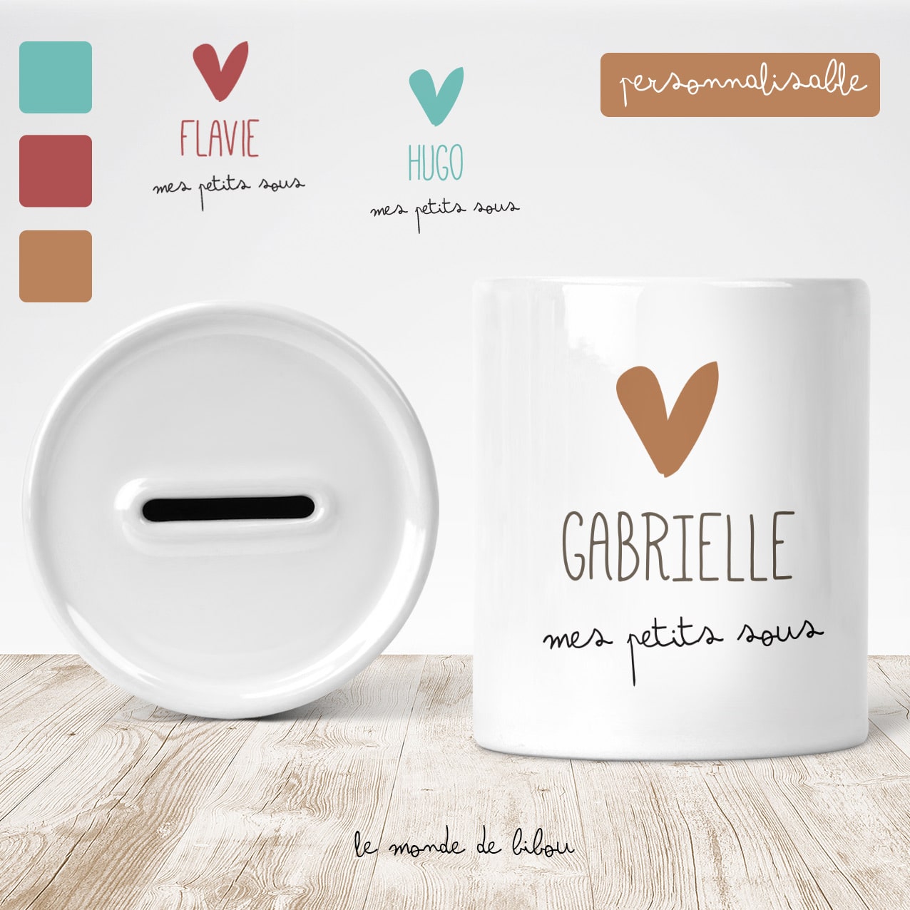 Vous cherchez un cadeau souvenir personnalisé pour la naissance de votre enfant ? Ne cherchez plus, notre Tirelire Petit cœur personnalisable est le cadeau idéal à offrir à l’occasion de votre évènement heureux. La tirelire est personnalisable au prénom de l’enfant. C’est un cadeau souvenir unique aussi joli qu’utile ! C’est une belle idée pour que les grands-parents puissent gâter leurs petits-enfants ou même que les parrains et les marraines chouchoutent leurs filleuls… En plus nous vous proposons 3 coloris au choix (Turquoise, Groseille ou Caramel) !