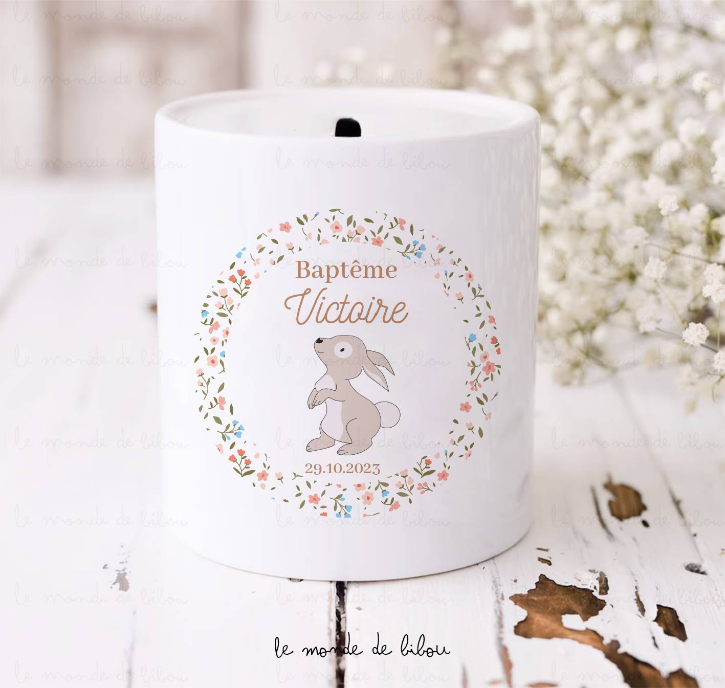 La Tirelire personnalisée comme cadeau souvenir est un joli présent à offrir à l’occasion d’un anniversaire, d’un Baptême, d’une communion ou même d’une naissance… Votre enfant gardera ainsi un souvenir précieux de cet évènement heureux quel qu’il soit.