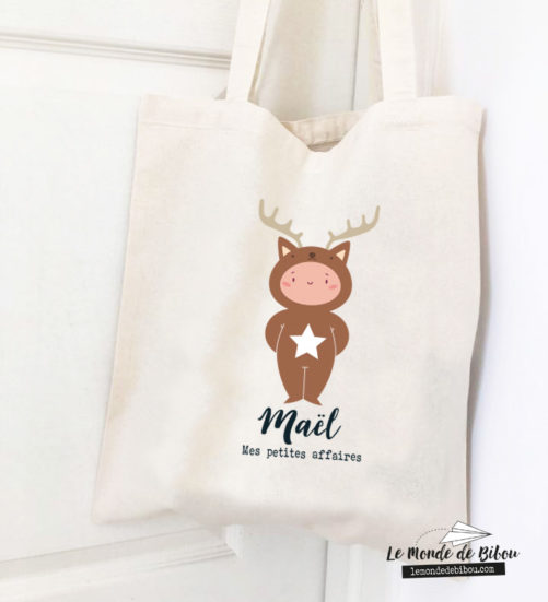 Un petit Sac tote bag personnalisable multi-usage qui servira pour la crêche, l’école maternelle, pour transporter ses affaires chez les copains ou encore pour partir en week-end chez papy et mamie… Tout est possible ! Le Sac tote bag mon petit cerf est personnalisé au prénom de votre enfant*. Les couleurs douces et discrètes, ainsi que son dessin mignon, plairont à coup sûr à l’enfant qui recevra ce petit sac.