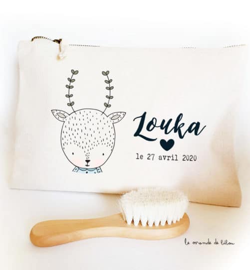 Cette jolie Trousse de toilette bébé Petit cerf sera un cadeau original et idéal pour une naissance, un Baptême ou encore un anniversaire. Un joli présent personnalisé que les grands-parents, les oncles et tantes, les parrains et les marraines ou encore les amis ou collègues pourront offrir lors de cet événement heureux.