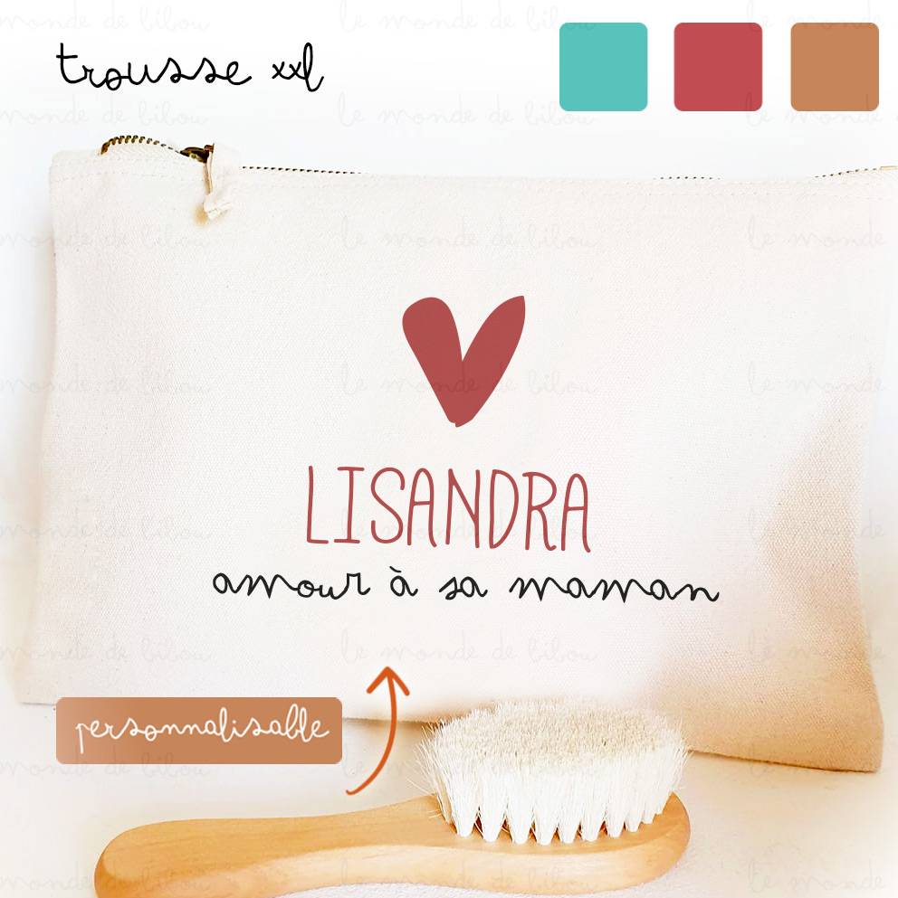 Cette jolie Trousse Petit cœur personnalisable sera un cadeau original et idéal pour une naissance, un Baptême ou encore un anniversaire. Un joli présent personnalisé que les grands-parents, les oncles et tantes, les parrains et les marraines ou encore les amis ou collègues pourront offrir lors de cet évènement heureux.