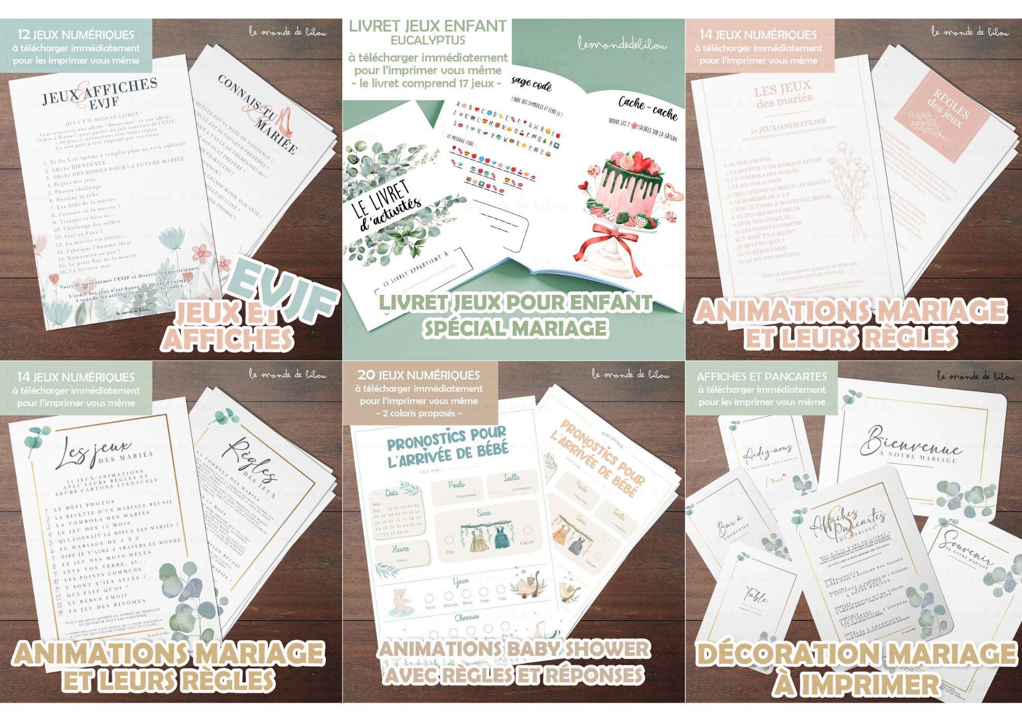 Chez Le Monde de Bibou, nous sommes passionnés par la création de souvenirs mémorables pour les moments spéciaux de votre vie. Pour cela, quoi de mieux qu’un produit numérique à télécharger immédiatement ? Que ce soit un mariage, un baptême, un anniversaire ou tout autre événement, nous nous efforçons de rendre ces moments inoubliables. C’est pourquoi nous sommes fiers de vous présenter notre collection de produits numériques. Dans cette section vous y retrouverez tout pour organiser vos évènements en passant par les cartes à imprimer, des affiches et pancartes décoratives ou encore des jeux et animations pour mariage, baby shower, baptême…